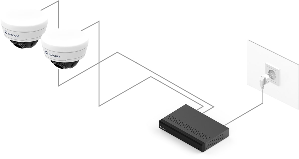 Opplev hvor enkelt det er med Power over Ethernet (PoE) – en smart teknologi som lar deg koble hvert kamera til opptakeren med kun én kabel. Denne kabelen overfører både videosignalet og strøm til kameraet. Du trenger altså ikke et strømuttak i nærheten av kameraet.