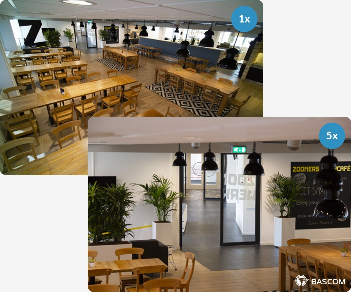 Bred bildevinkel og 5× zoom