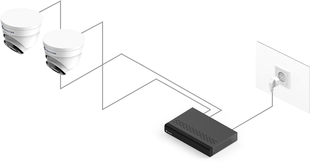Opplev hvor enkelt det er med Power over Ethernet (PoE) – en smart teknologi som lar deg koble hvert kamera til opptakeren med kun én kabel. Denne kabelen overfører både videosignalet og strøm til kameraet. Du trenger altså ikke et strømuttak i nærheten av kameraet.