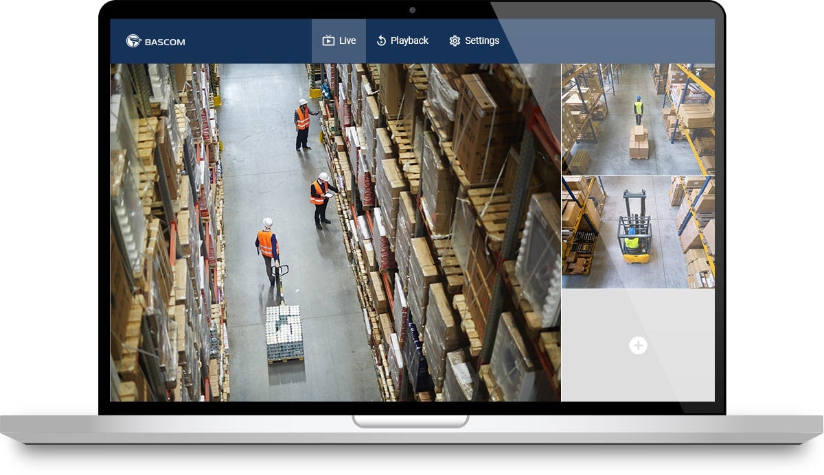 Bascoms programvare lar deg enkelt styre kameraene dine fra datamaskinen, enten du er på stedet eller eksternt. Du kan se direktebilder, bla i opptak og lage sikkerhetskopier. Programvaren støtter også flere systemer i ett og samme grensesnitt.