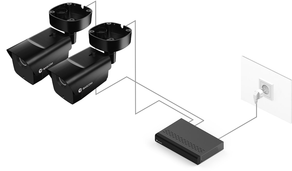 95 % av våre kunder har aldri tidligere installert et kamerasystem, men monterer Bascom-systemet helt selv. Du skrur kameraene fast i vegg eller tak, setter støpslene i kontakten, og systemet fungerer med én gang.