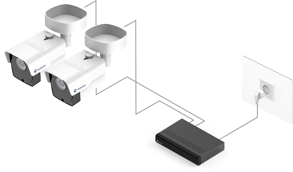 95 % av våre kunder har aldri tidligere installert et kamerasystem, men monterer Bascom-systemet helt selv. Du skrur kameraene fast i vegg eller tak, setter støpslene i kontakten, og systemet fungerer med én gang.