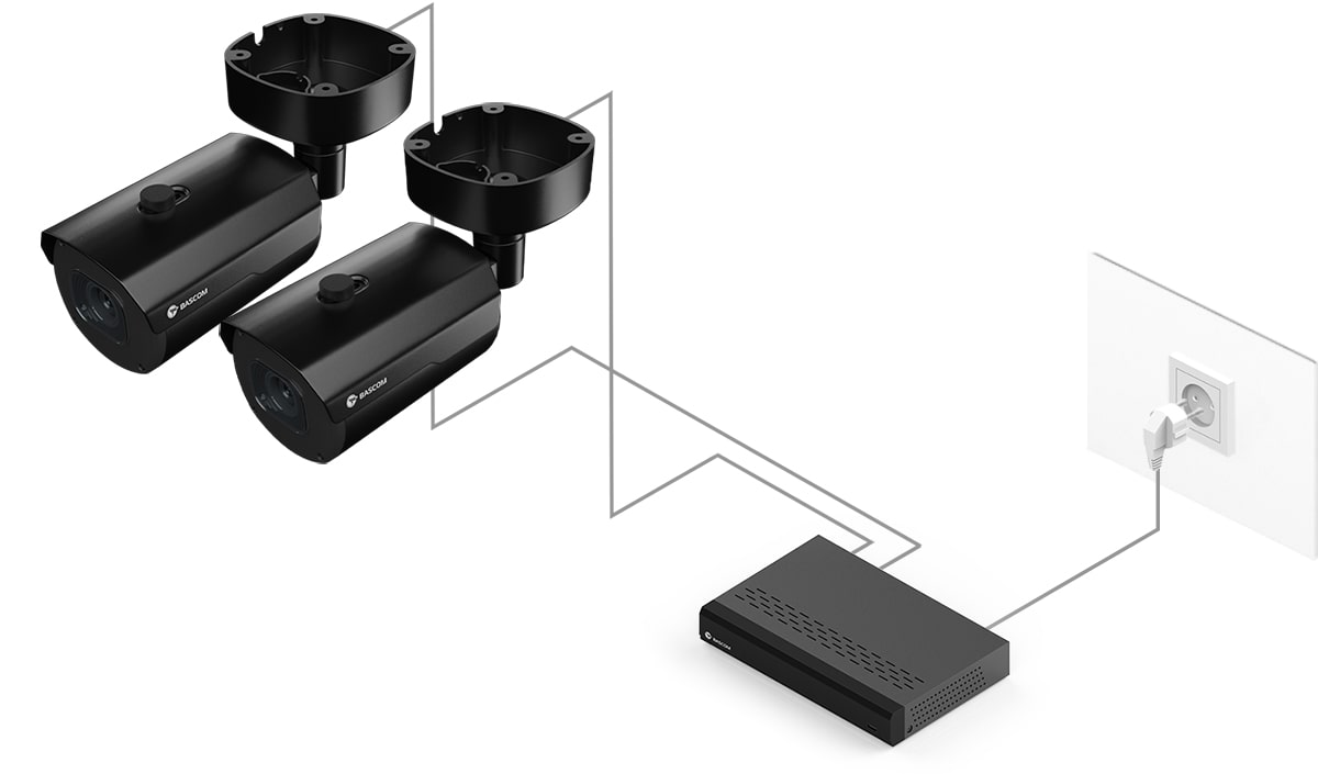 95 % av våre kunder har aldri tidligere installert et kamerasystem, men monterer Bascom-systemet helt selv. Du skrur kameraene fast i vegg eller tak, setter støpslene i kontakten, og systemet fungerer med én gang.
