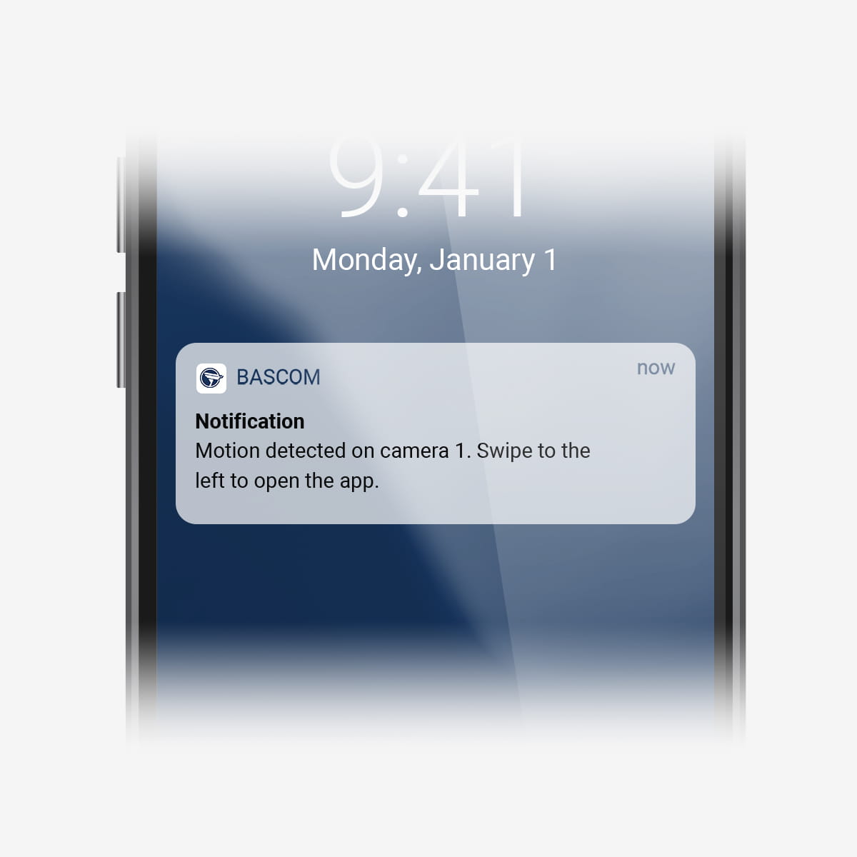Følg med live fra hele verden: Få direkte tilgang til kamerasystemet ditt når som helst og hvor som helst via Bascom-appen på smarttelefonen din.
