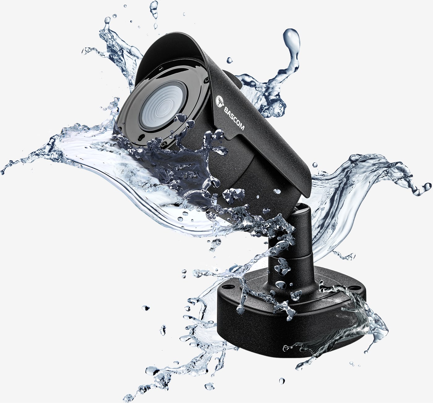 Kameraene fra Bascom er vannbestandige (IP67-klassifisering) og tåler alle værforhold. Dette gjør dem godt egnet for både innendørs og utendørs bruk. I tillegg er det robuste huset laget av herdet aluminium og overflatebehandlet med slitesterk pulverlakk. Dette beskytter kameraene mot korrosjon og slitasje, noe som gjør dem til et holdbart valg med svært lang levetid.